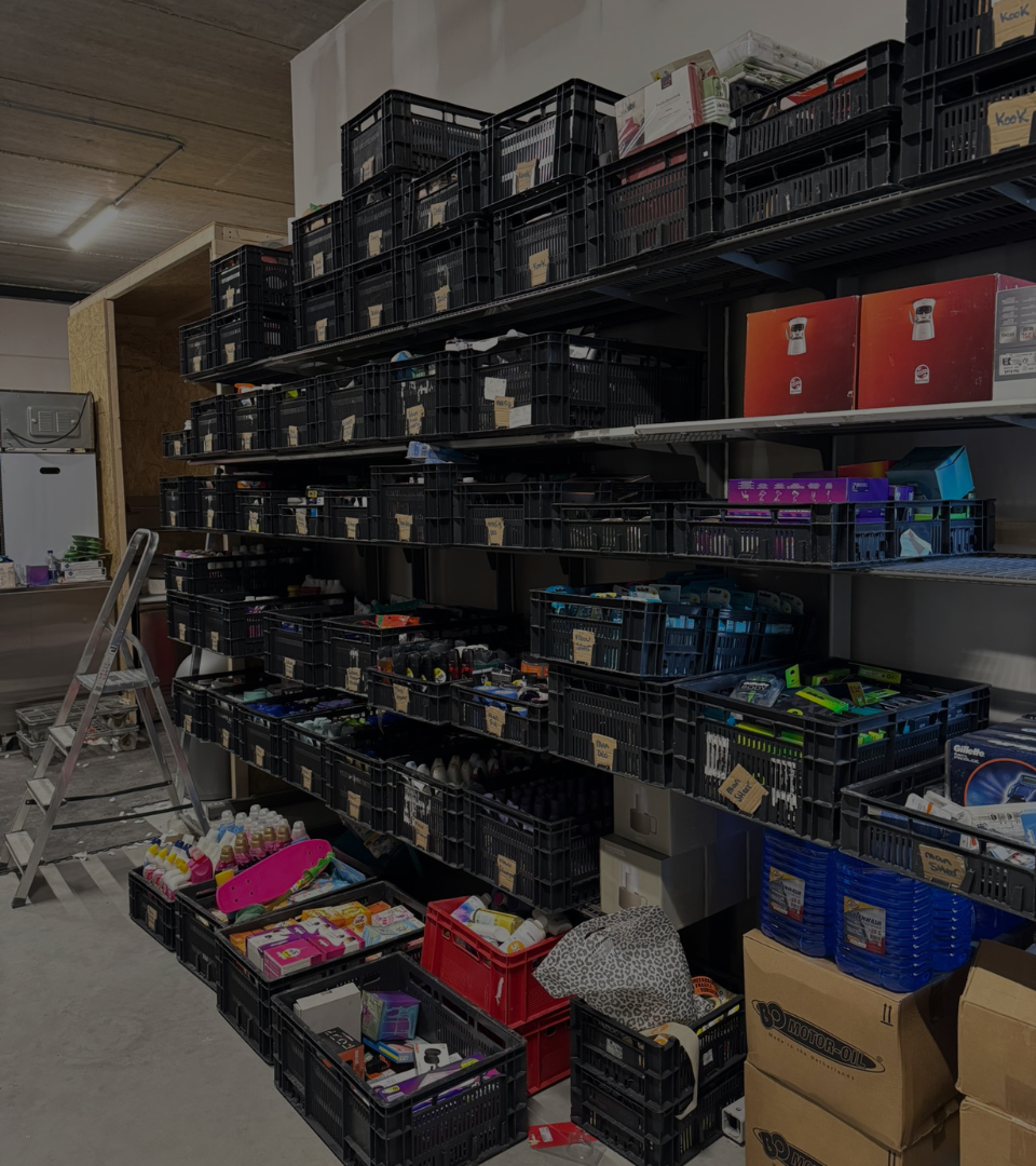 Onze werkgever heeft zijn supermarkt verkocht en daardoor bleef er een grote voorraad nieuwe, houdbare producten over.